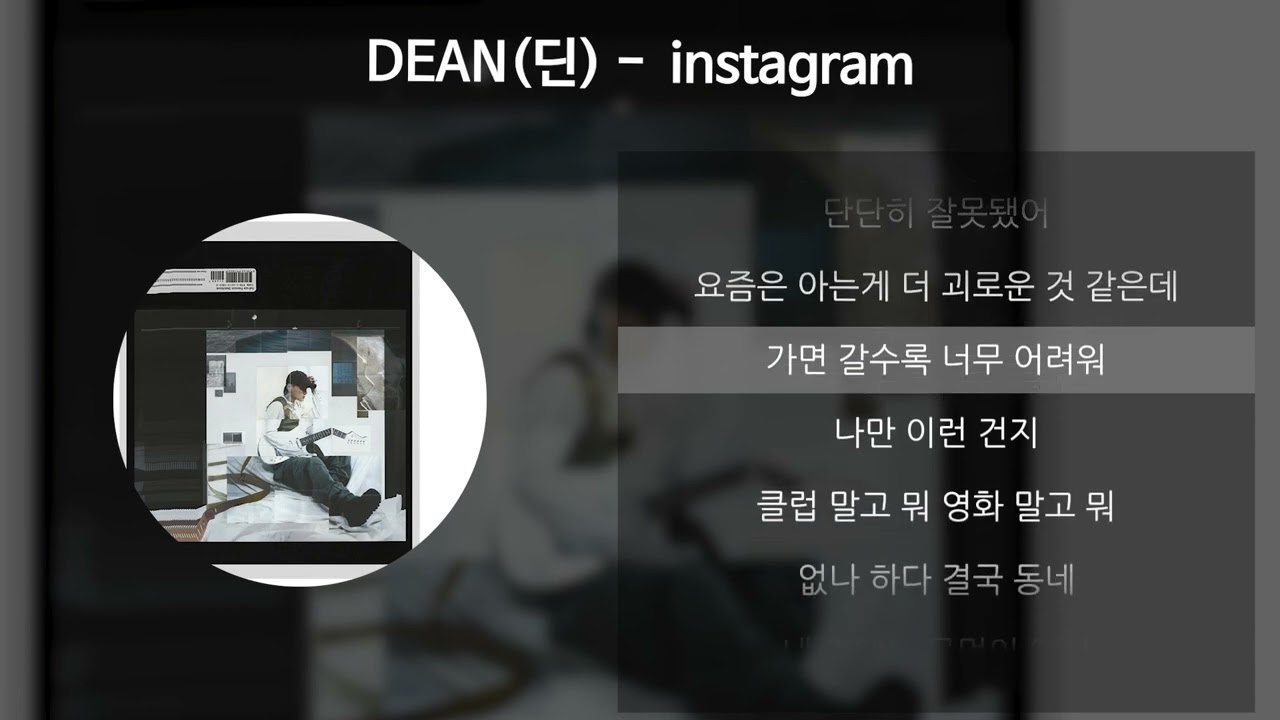 DEAN(딘) - instagram [가사/Lyrics] #DEAN #딘 #instagram 발매 : 2017.12.26 아티스트 : DEAN(딘) 앨범 : instagram 작곡 ...